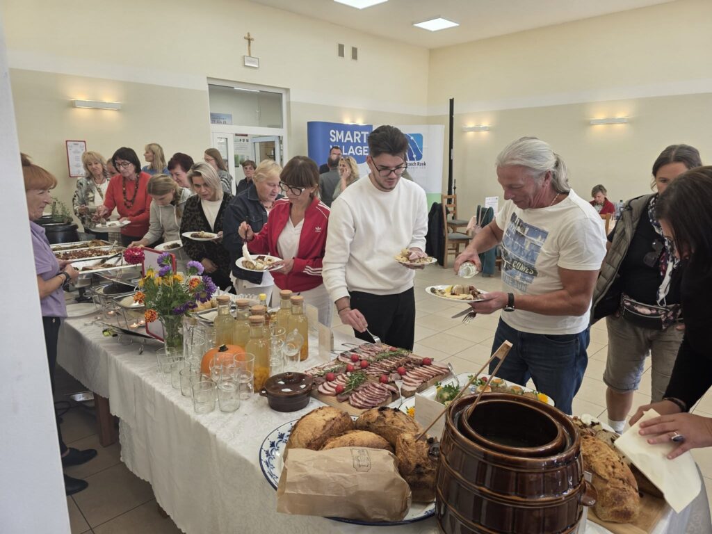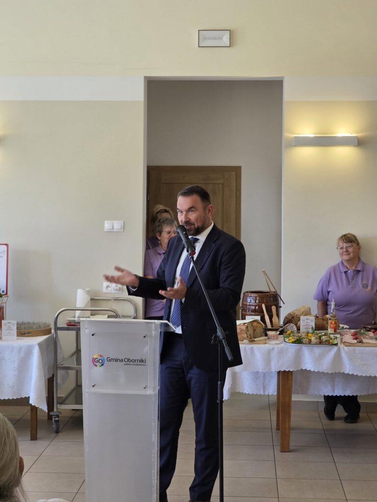 Po części oficjalnej głos zabrał Sołtys Ocieszyna i Radny Rady Miejskiej w Obornikach – Błażej Pacholski, zapraszając wszystkich uczestników do wspólnego stołu. Tradycyjne potrawy i regionalne smakołyki przygotowały niezastąpione Panie i Panowie z Koła Gospodyń Wiejskich w Ocieszynie. Na stołach pojawiły się m.in.: czarnina z domowym makaronem, szare kluski z kapustą, pierogi z serem, śledzie w oleju lnianym, wędliny wędzone tradycyjnym sposobem, pieczona szynka, flaczki wołowe, chruściki oraz szneka z glancem – a to tylko część pyszności, jakie czekały na naszych gości.