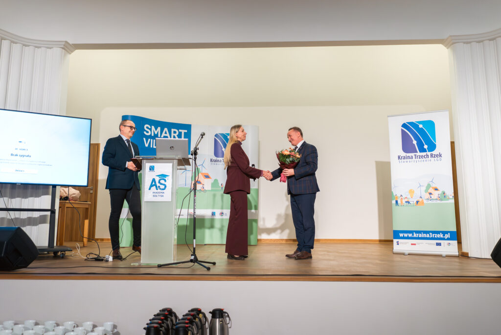 W Domu Kultury w Objezierzu zorganizowaliśmy konferencję „Akademia Sołtysa”, skierowaną do Sołtysów oraz Przewodniczących Zarządów Osiedli z gmin Oborniki, Suchy Las, Murowana Goślina i Ryczywół. Celem wydarzenia było wzmocnienie kompetencji lokalnych liderów, budowanie relacji oraz wymiana dobrych praktyk, które wspierają rozwój społeczności obszaru naszej LGD. Wydarzenie swoją obecnością uświetnili Wicewojewoda Wielkopolski Jarosław Maciejewski, Burmistrz Obornik Tomasz Szrama, Zastępca Wójta Gminy Suchy Las Ilona Ciok, Przewodnicząca Rady Miejskiej w Murowanej Goślinie Elżbieta Walczak oraz Dyrektor Wydziału Rolnictwa i Środowiska WUW Nina Bartol. Obecni byli również przedstawiciele jednostek organizacyjnych podległych gminom. Lokalną Grupę Działania Kraina Trzech Rzek reprezentował Zarząd składzie: Małgorzata Najdek – Prezes Zarządu, Magdalena Przystałowska – Wiceprezes Zarządu oraz Grażyna Foedke – Wiceprezes Zarządu, aktywnie wspierając przebieg konferencji i uczestnicząc w jej części merytorycznej. Konferencję otworzył Burmistrz Obornik Tomasz Szrama, podkreślając kluczową rolę Sołtysów w budowaniu silnych, aktywnych i odpowiedzialnych wspólnot. Następnie głos zabrał Wicewojewoda Jarosław Maciejewski, dzieląc się swoim doświadczeniem oraz wskazując na znaczenie stałego podnoszenia kwalifikacji przez liderów lokalnych. W części programowej zaprezentowaliśmy wystąpienia Niny Bartol, która omówiła funkcjonowanie funduszu sołeckiego i aktualne zmiany w przepisach; Ilony Ciok, przedstawiającej alternatywne możliwości finansowania inicjatyw społecznych; Małgorzaty Najdek – Prezes naszej LGD, prezentującej aktualne nabory oraz plany na rok 2026; a także prof. dr hab. Henryka Mruka, który w inspirujący sposób przedstawił zasady mądrego liderowania oraz wyzwania stojące przed osobami zaangażowanymi w rozwój społeczności lokalnych. Po części szkoleniowej uczestnicy mieli możliwość rozmowy, wymiany doświadczeń oraz chwili wytchnienia podczas poczęstunku przygotowanego przez uczniów Zespołu Szkół im. Adama Mickiewicza w Objezierzu. Składamy serdeczne podziękowania Dyrektor Edycie Mikołajczak za wsparcie oraz zaangażowanie w organizację tej części wydarzenia.